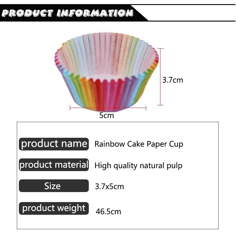 100 stuks kleurrijke regenboog papieren cake cupcakevormpjes bakvorm muffindoos vormpjes feestschaal cakevorm decoratiegereedschap 11