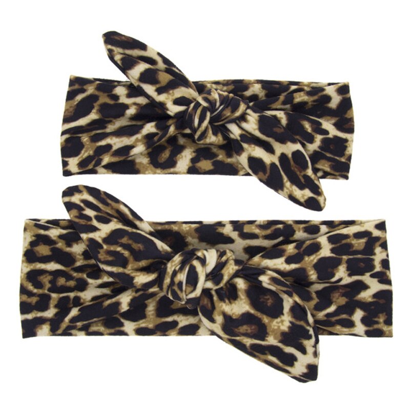 Balleenshiny 2 Stuks Moeder En Kind Hoofdband Sets Gedrukt Luipaard Print Geknoopt Hoofdband Polyester Katoen Zachte Haaraccessoires