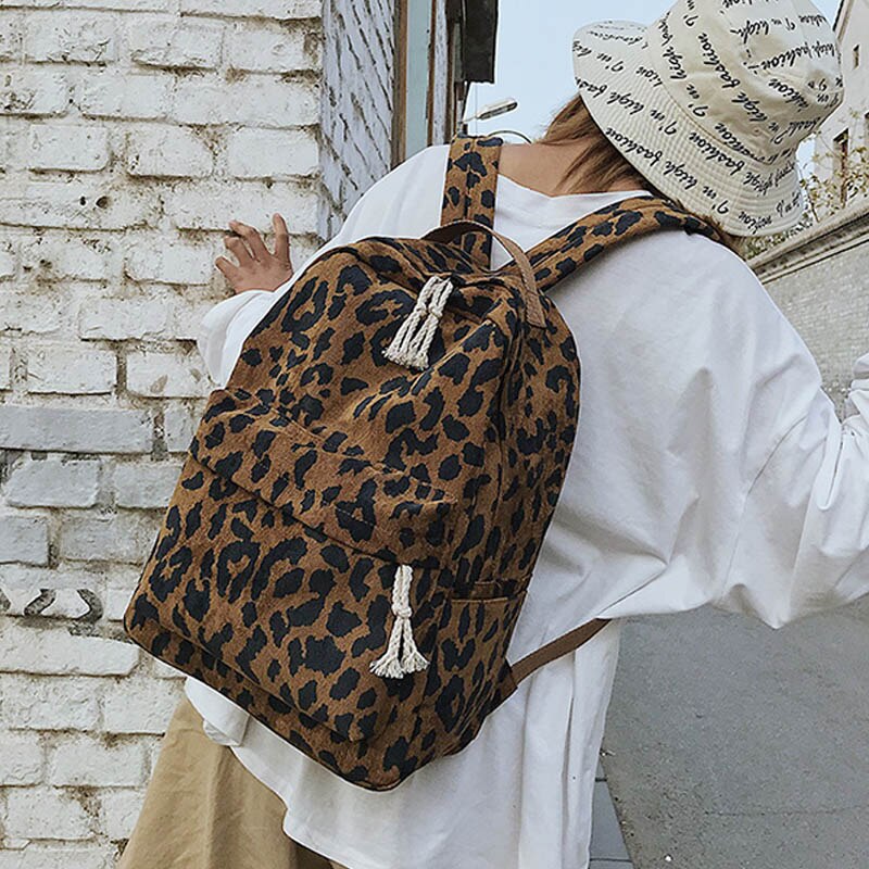 Damesrugzak luipaardprint corduroy dubbele banden damesreisrugzak grote capaciteit meisjes school schoudertas xa587h
