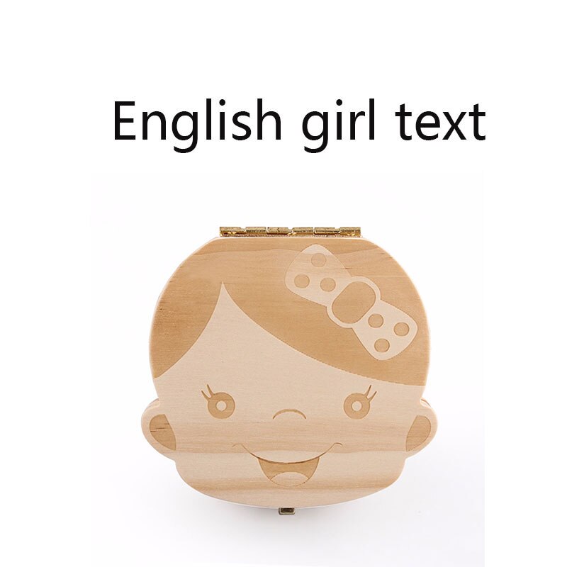 Tand Doos Engels Spaans Tekst Baby Jongen Meisje Fallen Opslag Natuurlijke Hout Case Besparen Melk Tanden Collection Organizer Houder