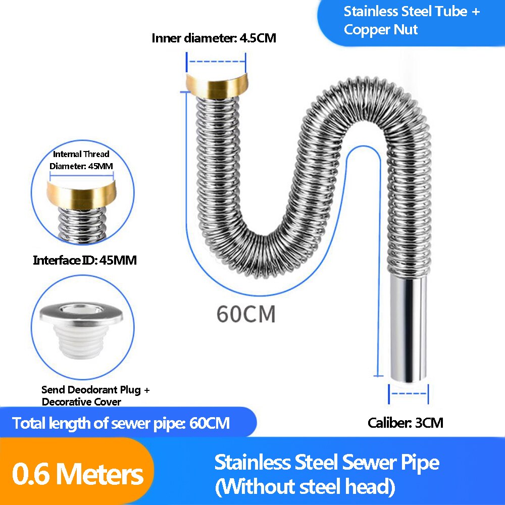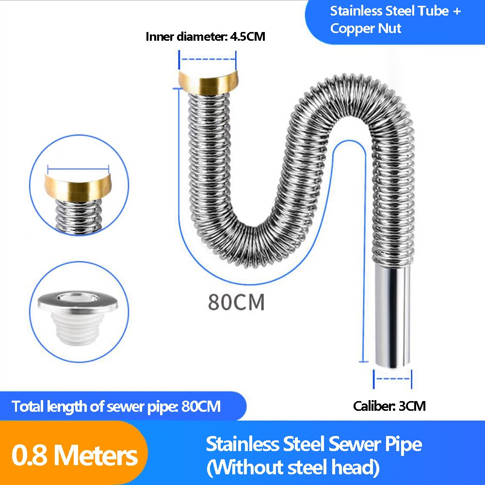 0.6M/0.8M/1M/1.3M Gootsteen Afvoer Slang Gootsteen Fittingen Afdruiprek Afvoer slang Rvs Vaatwasser Zwembad Enkele Tank