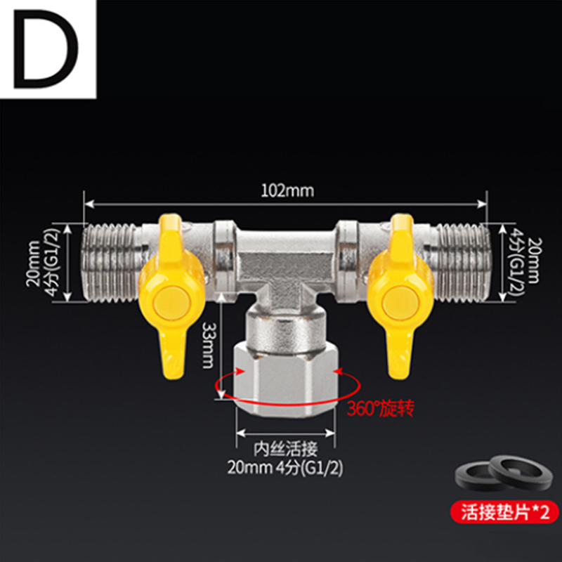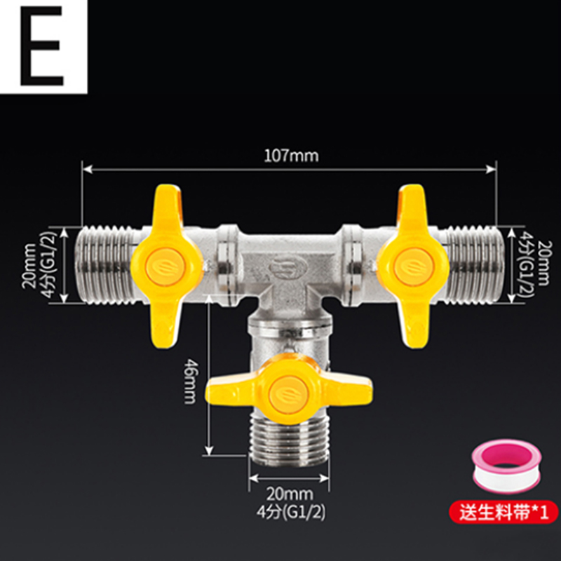 1/2 "Fittingen Alle Koperen Plating 3-Weg 4-Way Gasklep Hoek Ventiel Bal Boiler kraan Schakelaar Shunt Outlet Conversie