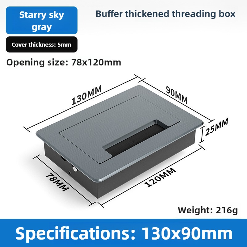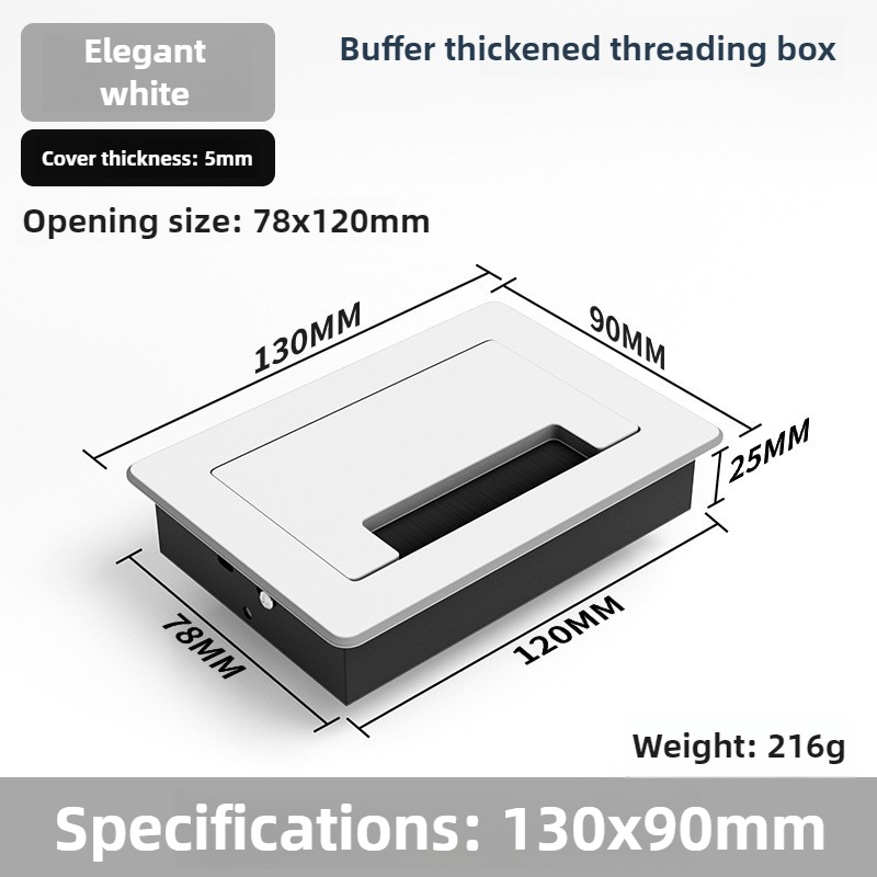 1 ST aluminium rechthoekige bureau kabeldoorvoertules draadgat deksel Kabeluitlaat Poort Oppervlak tafel kabel gat Meubelbeslag