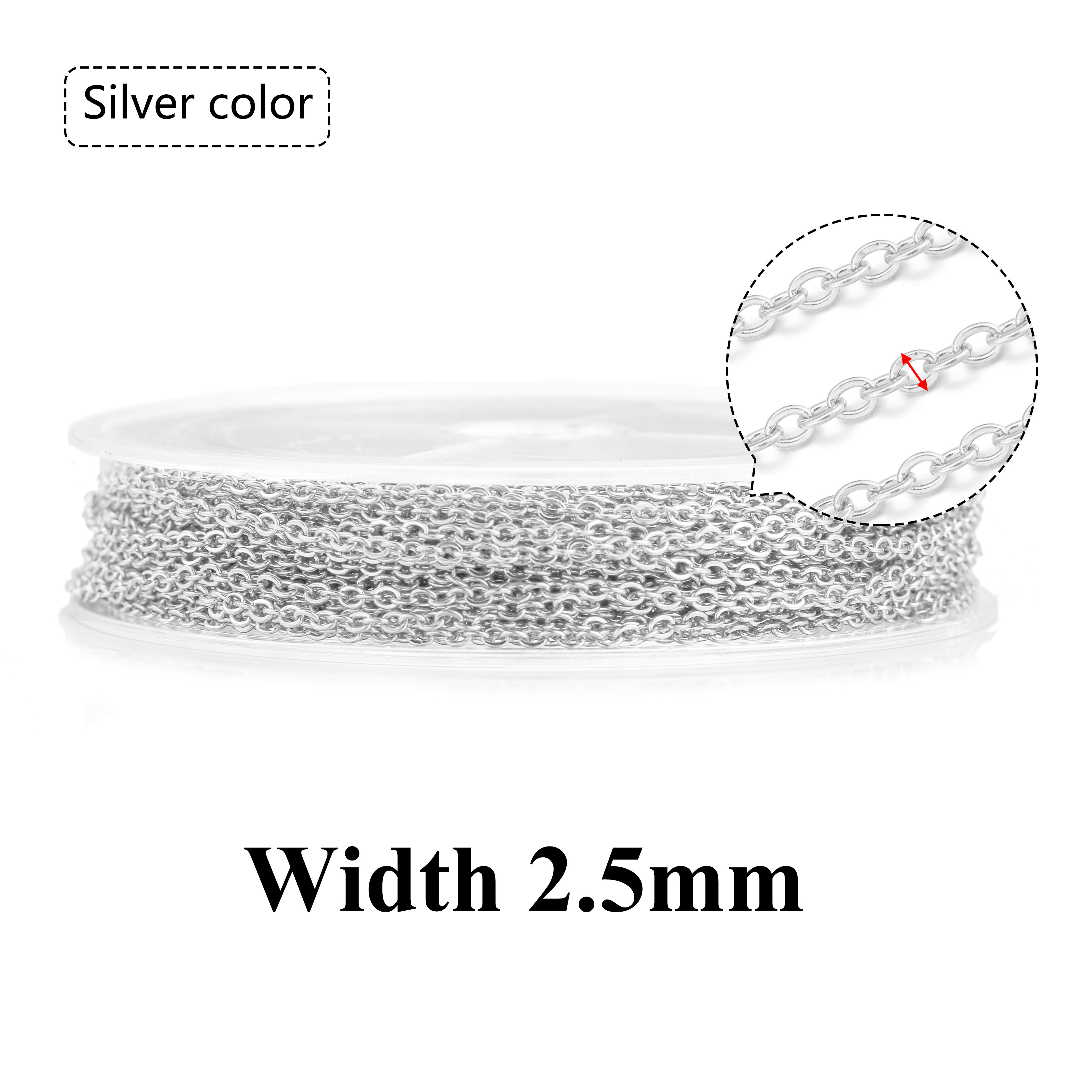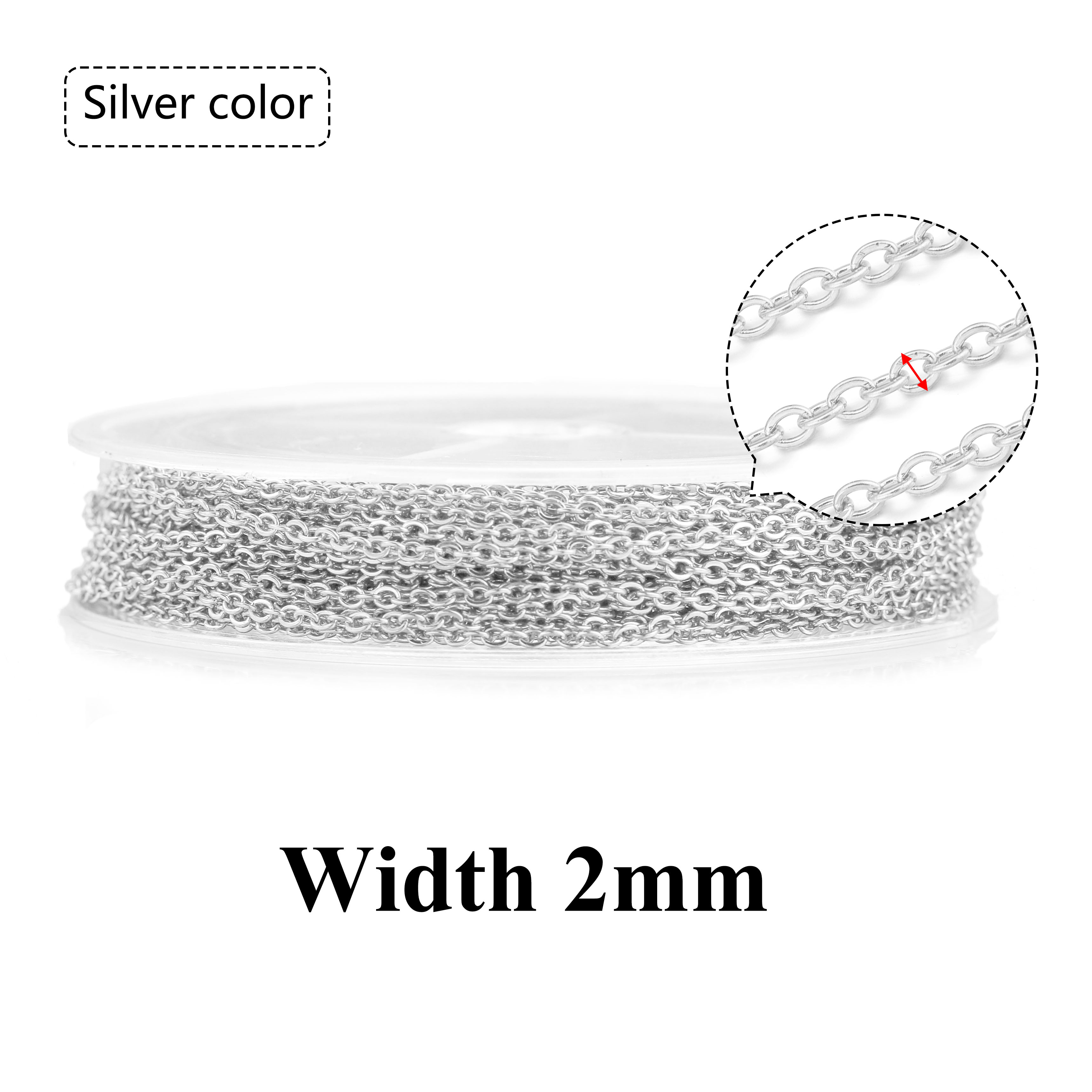 10 m/rol roestvrij staal plat kabel ketting bulk voor zilver rose gouden ketting 1 mm 1,5 mm 2 mm 2,5 mm ketting diy sieraden materialen