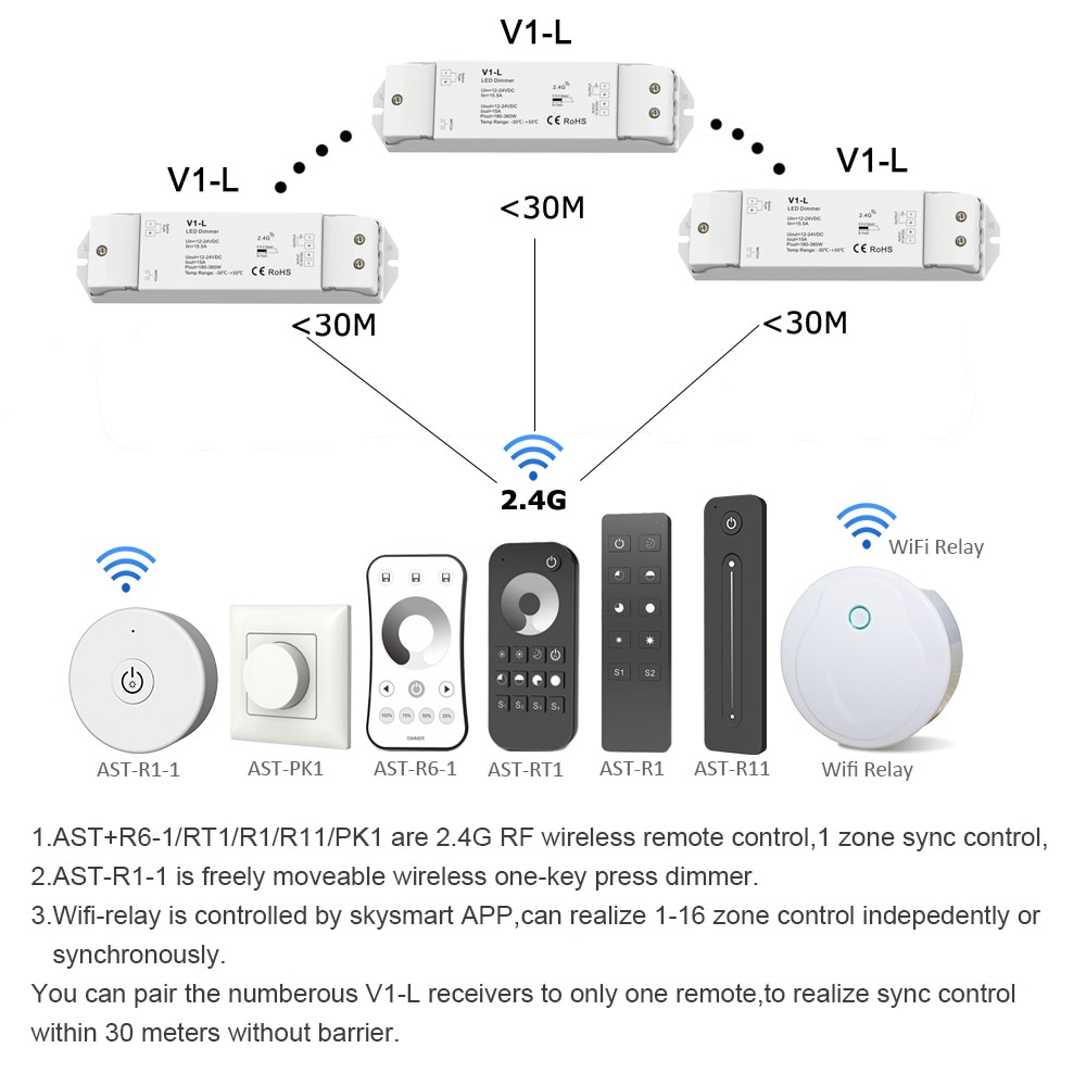12V Led Dimmer Wifi Pwm Rf 2.4G Wireless Touch Remote Dc 24V 12V Smart Wifi dimmer Controller Voor Enkele Kleur Led Strip