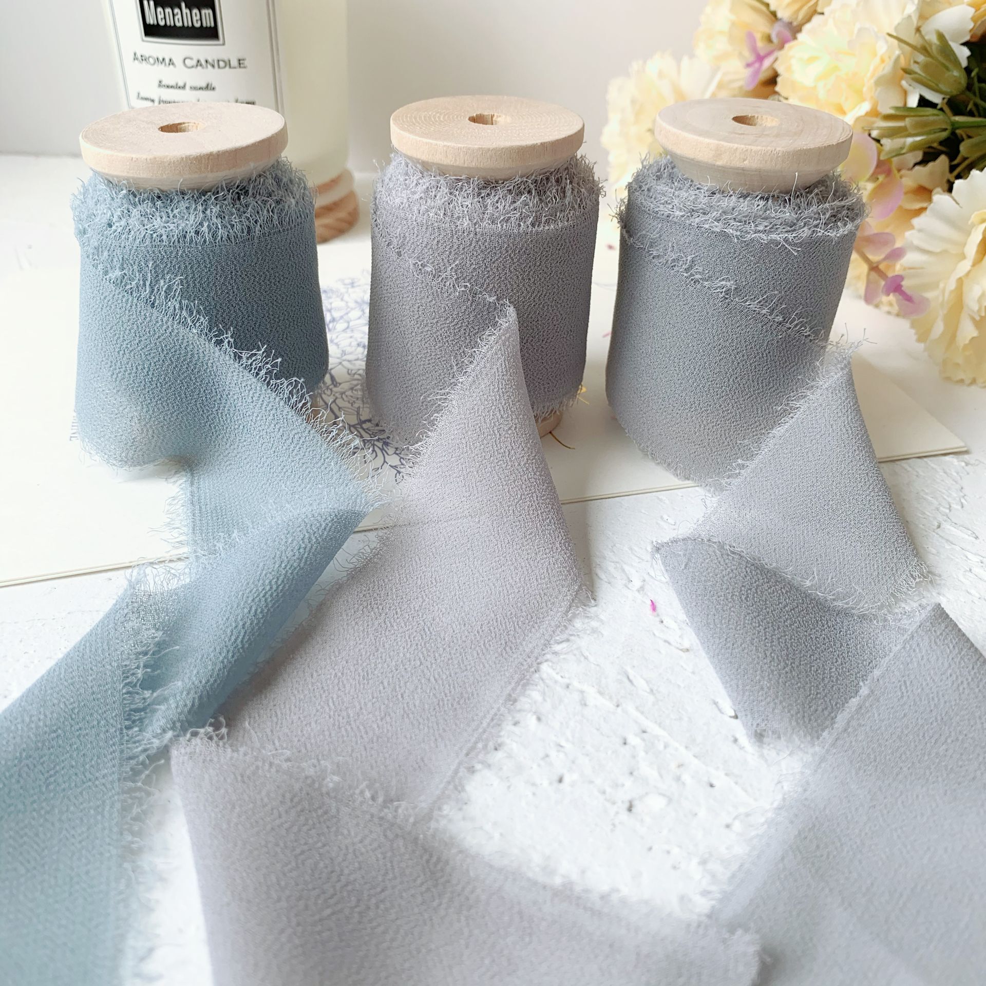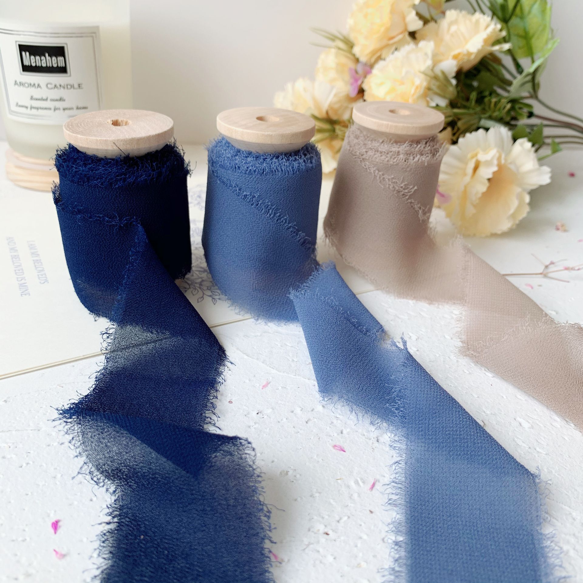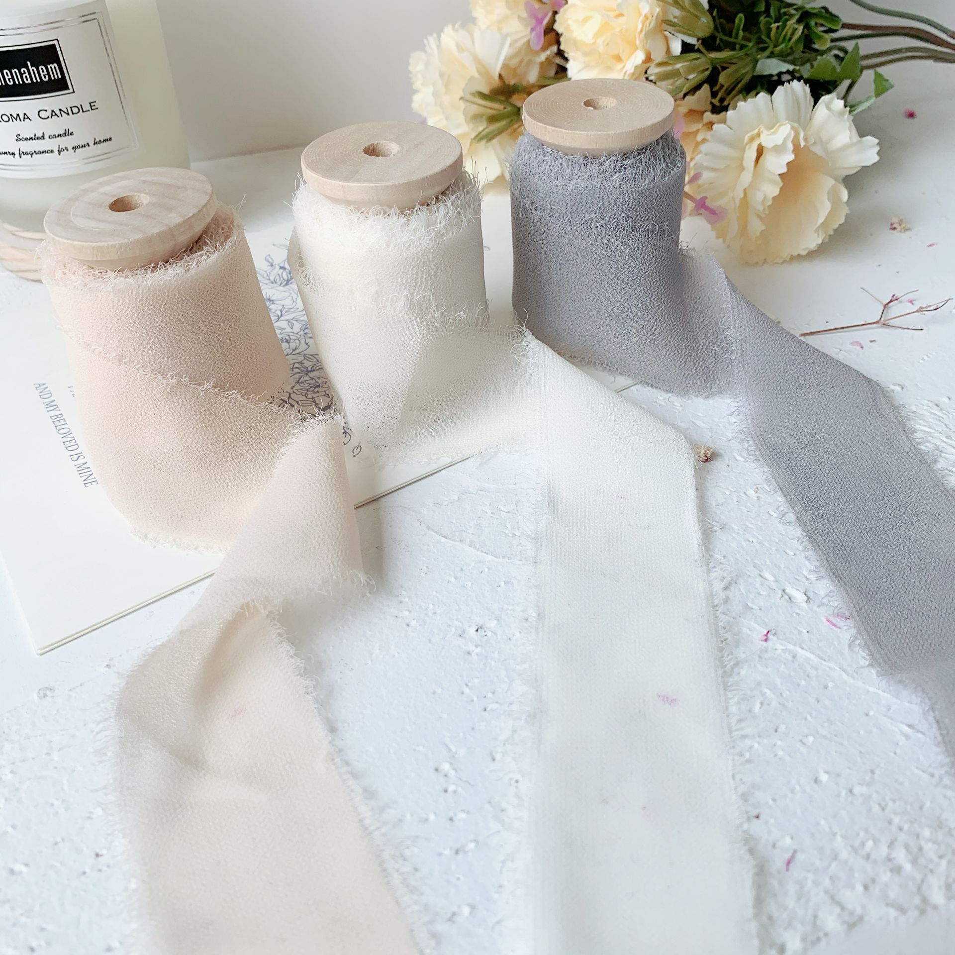 3 Rollen/Set Roll Ins Stijl Handgemaakte Chiffon Verzwakte Randen Zijden Lint Bruiloft Boeket Streamers Fotografie Styling, cadeaupapier