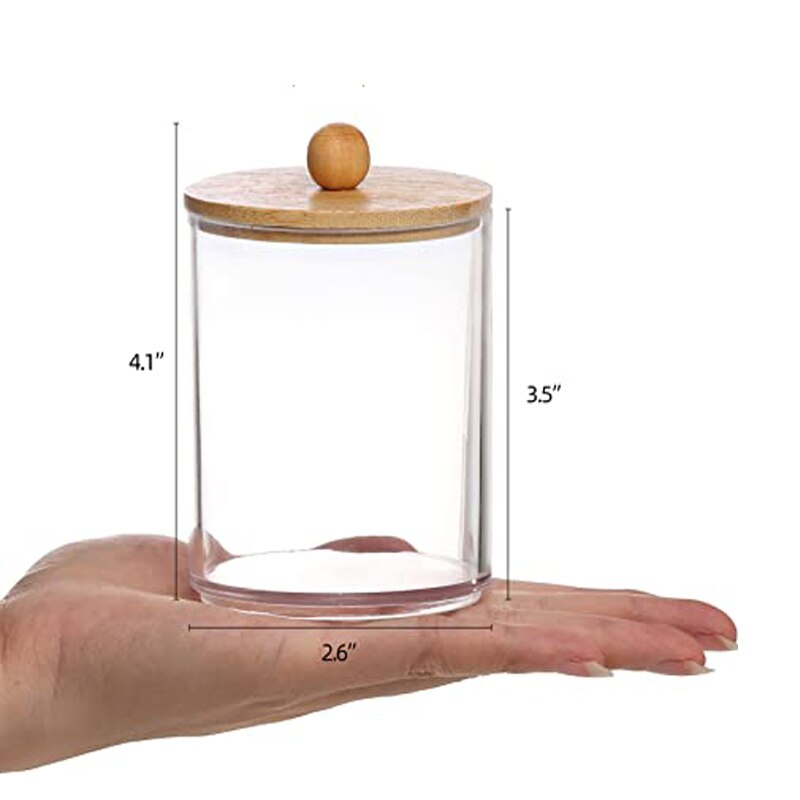 Badkamer Organizer Cosmetische Opbergdoos Katoenen Bal Qtip Beugel Acryl Opslag Jar Pen Houder Met Bamboe Cover Stofdicht