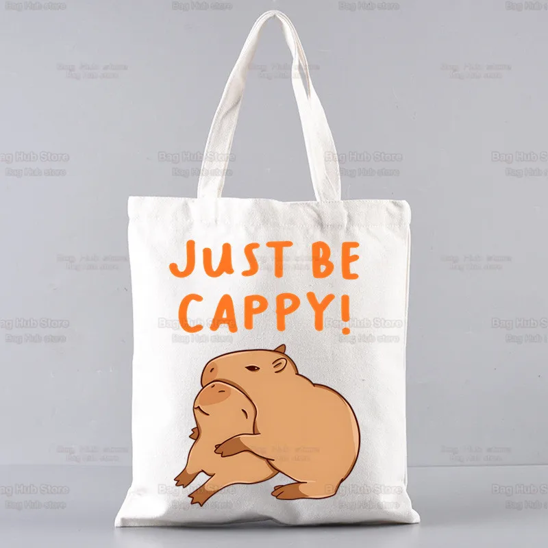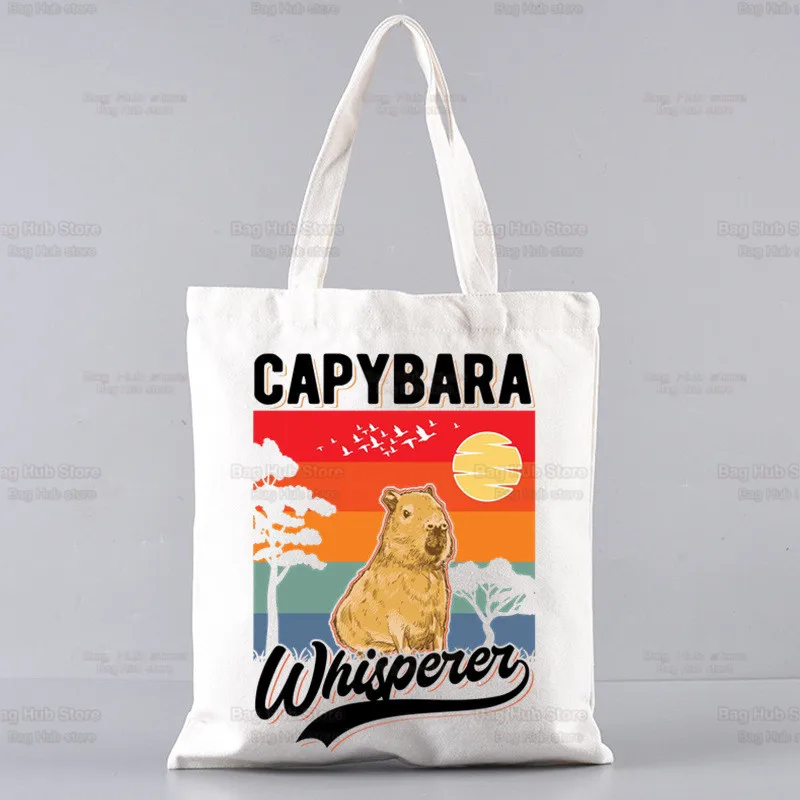 Capybaras Draagtas Unisex Canvas Tassen Gewoon Een Meisje Dat Houdt Van Capybaras Boodschappentassen Bedrukt Casual Schoudertas Opvouwbaar