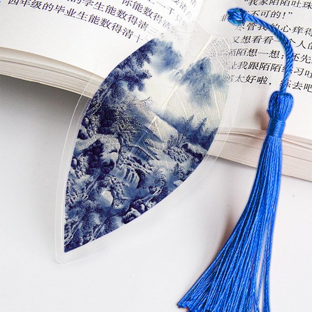 Creatieve Chinese Stijl Bladwijzer Met Kwastjes Mooie Blauw En Wit Porselein Bladader Voor Vriend Student Schoolbenodigdheden