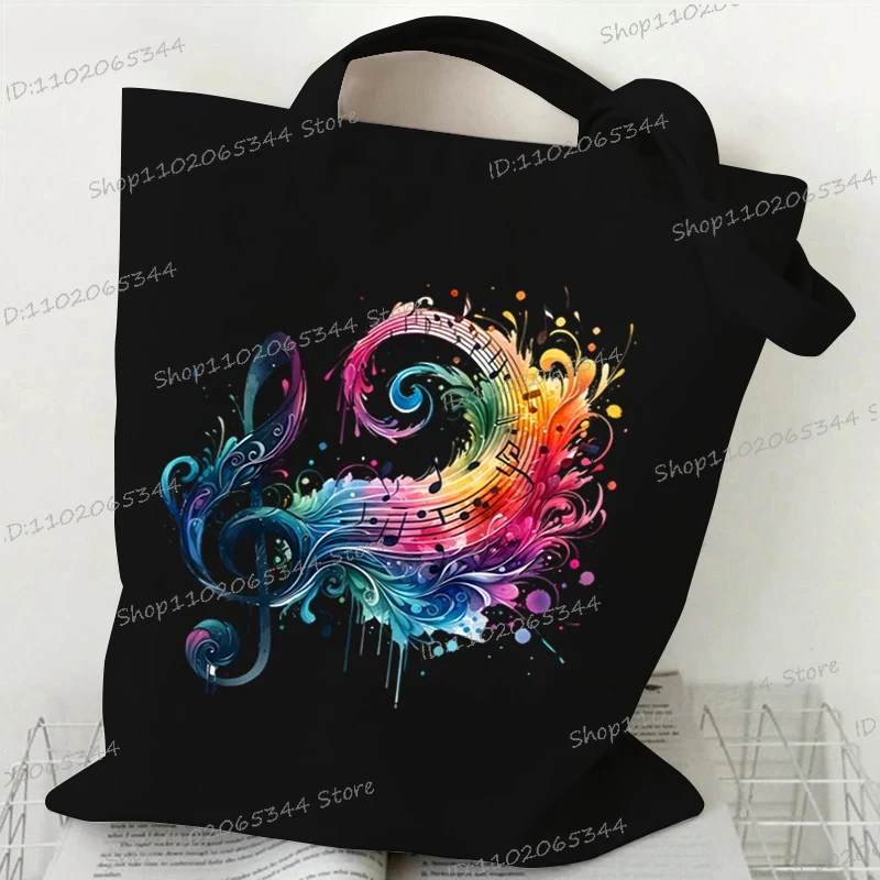 Dameshandtassen met muzieknotatie, canvas tas, grappige aquarel muzieknoot schoudertas voor tieners, zijtas voor dames