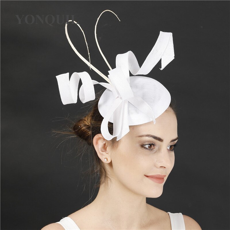 Geel Sinamay Partij Bruid Hoed Bruiloft Vrouwen Tovenaar Hoops Accessoires Mode Dames Gelegenheid Chapeau Cap Bridal Hoeden