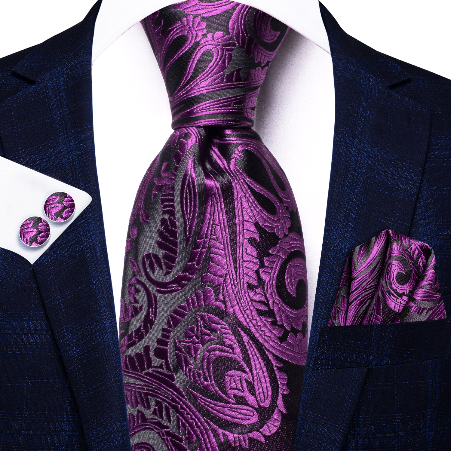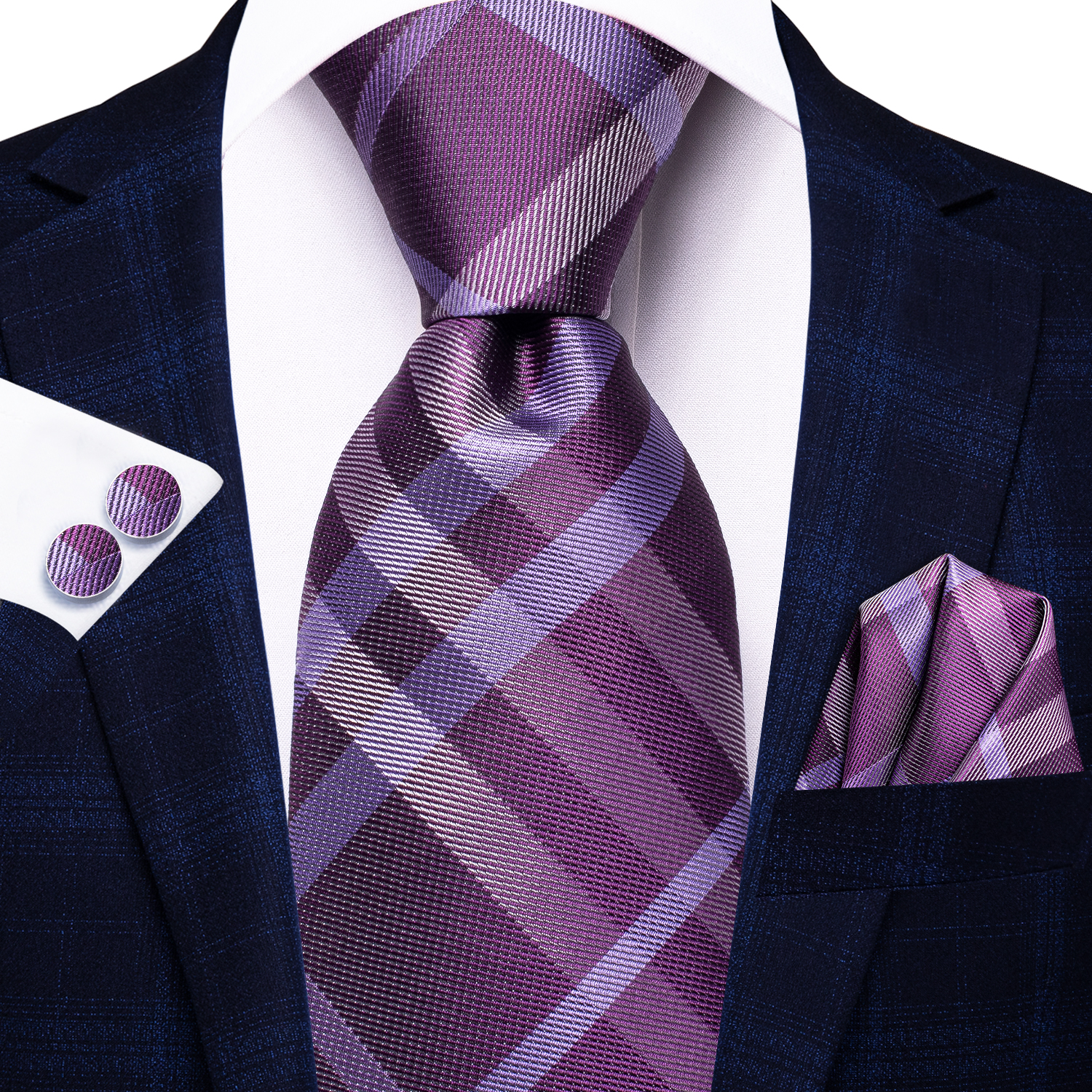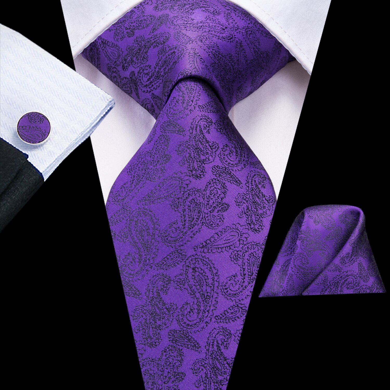 Hi-Tie Licht Paarse Effen Zijden Trouwstropdas Voor Mannen Zakdoek Cufflink Cadeau Stropdas Set Mode