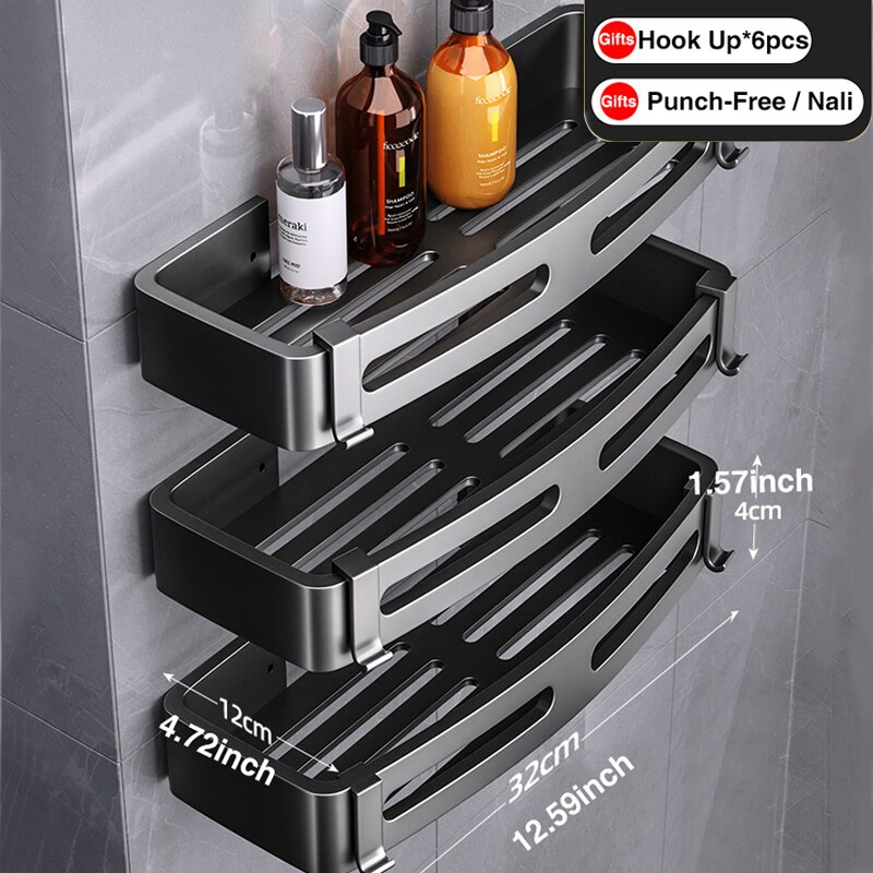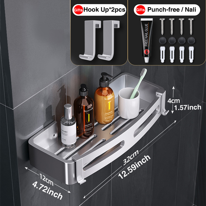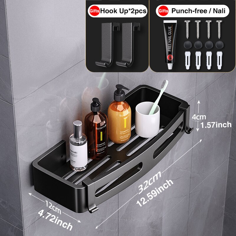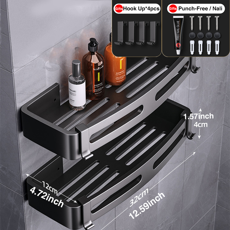 Joybos Ruimte Aluminium Badkamer Plank Douche Planken Geen-Boor Wall Mount Douche Opbergrek Hoekplank Badkamer Accessoires