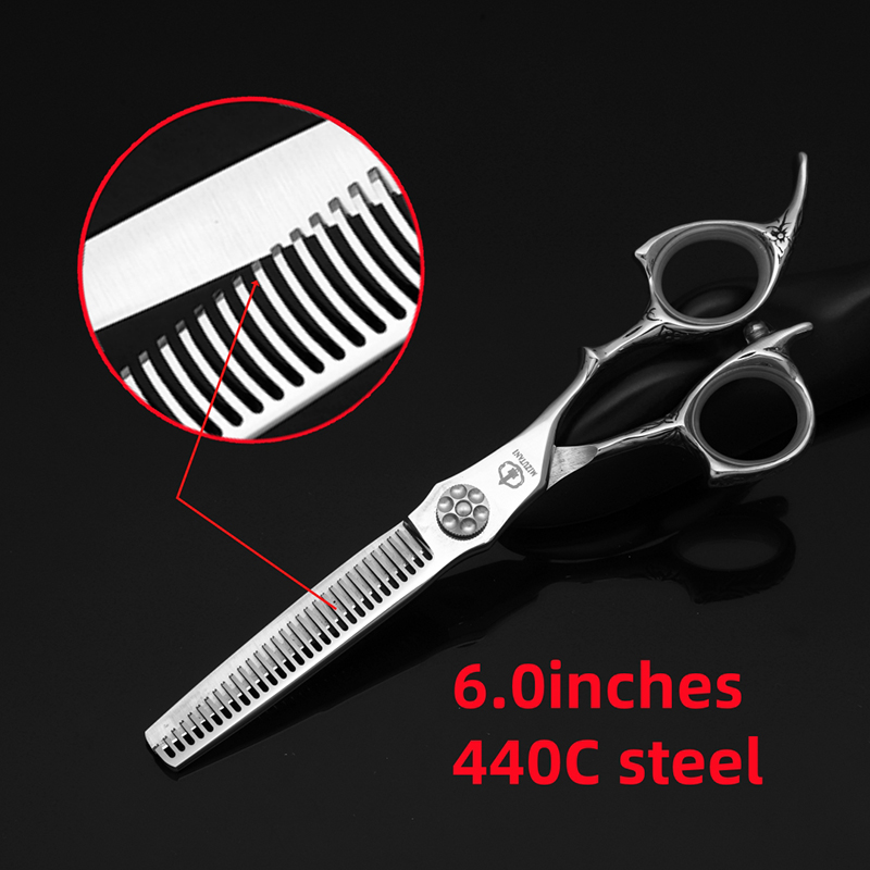 Kappersgereedschap, kappersbenodigdheden, salonschaar, uitdunschaarset, of 6.0 haarscharen van 7 cm.