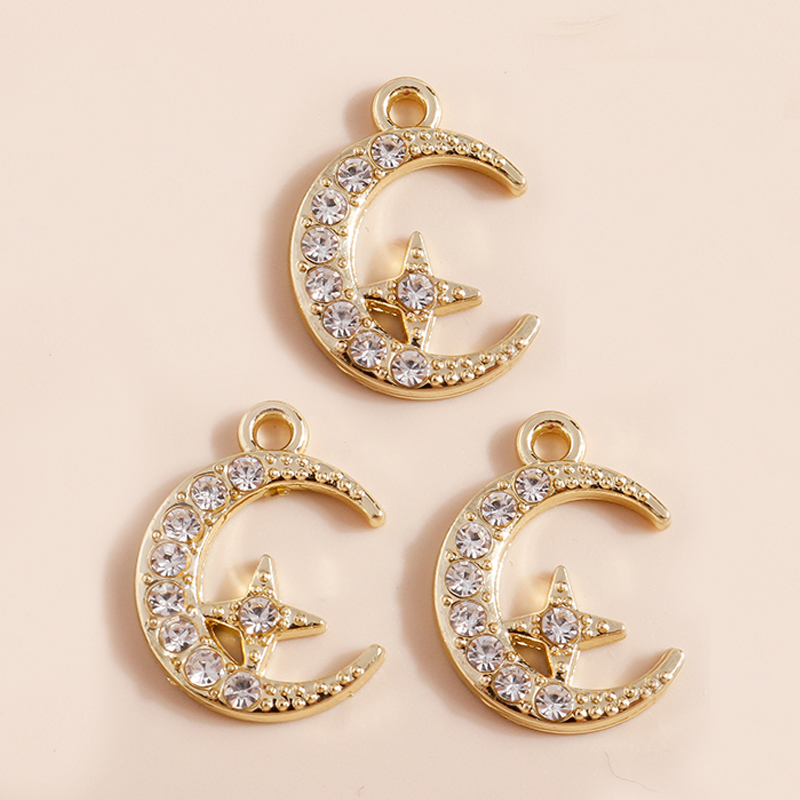 Leslie 5 Stuks Prachtige Gouden Zilveren Kleur Kristal Halve Maan Sterren Bedels Voor Oorbellen Armband Ketting Diy Sieraden Hangers