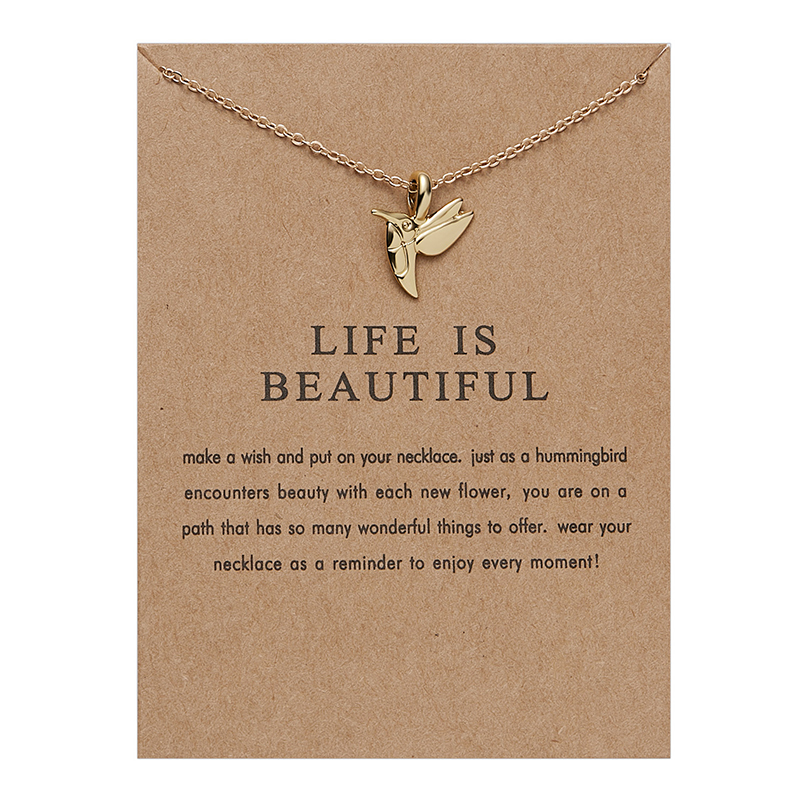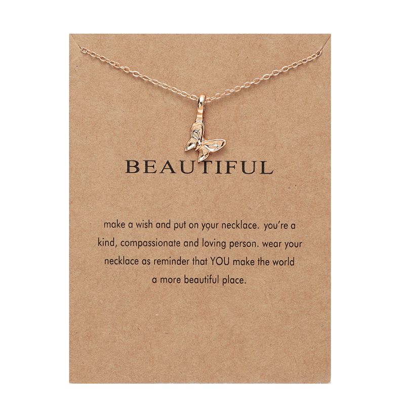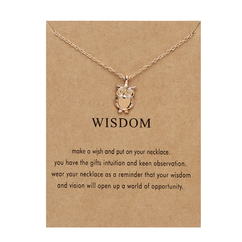 Mode Make A Wish Card Ketting Sieraden Goud Kleur Uil Veer Olifant Vleugel Eenhoorn Vlinder Hart Hanger Vrouwen Bijoux