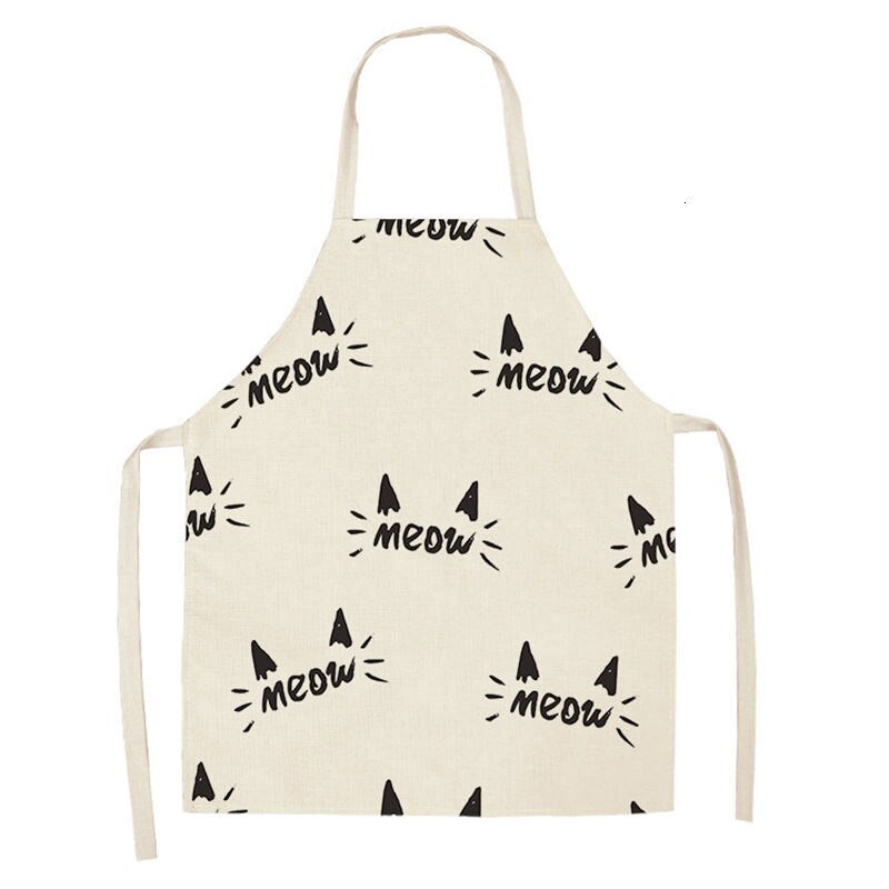 Mooie cartoon katten keukenschorten voor vrouwen katoenen linnen slabbetjes huishoudelijke schoonmaakschort thuis kookschort 53*65cm wq0026