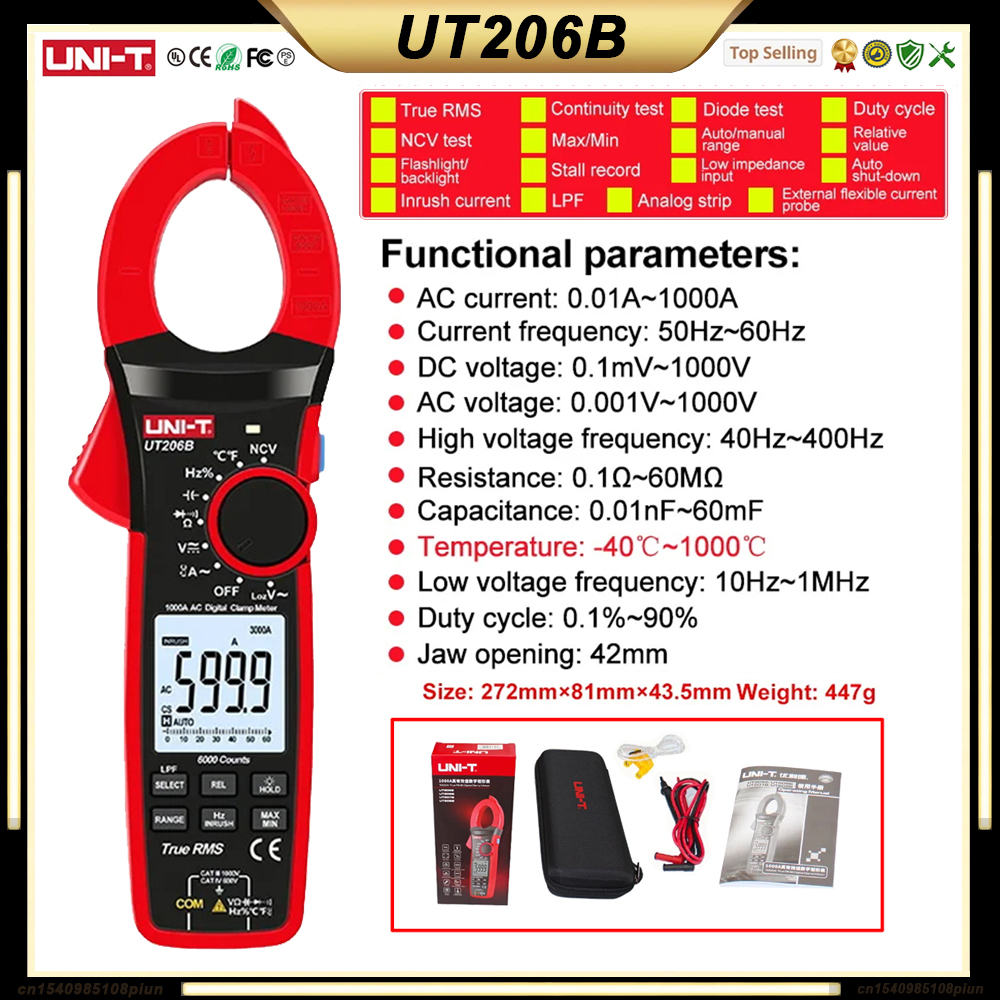 UNI T UT210E UT210D UT202A + UT204 PLUS Stroomtang Ampèremeter Digitale Elektricien Tool Elektrische Tester Multimeter