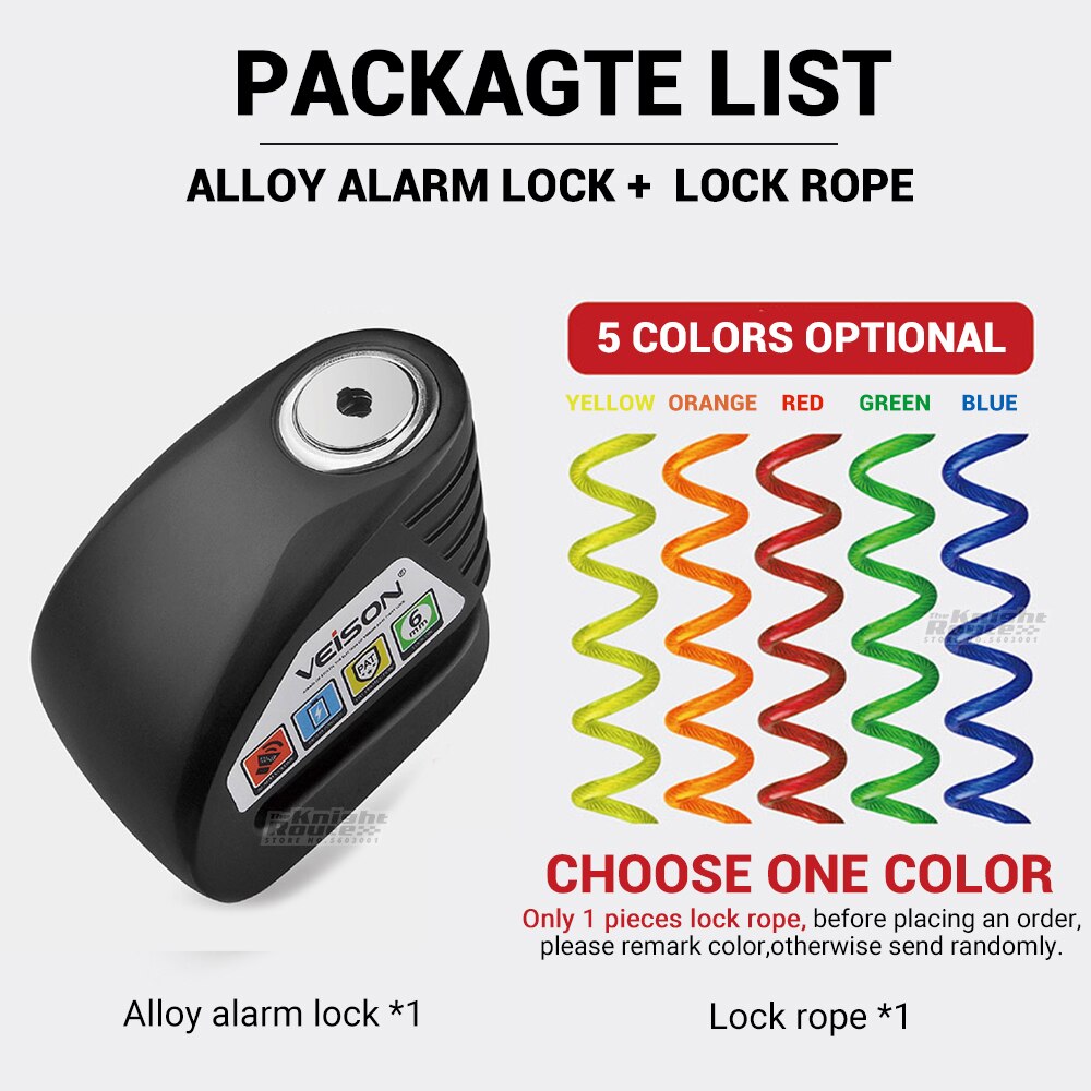 Veison Motorfiets Alarm 130dB Anti-Diefstal Motorfiets Slot Fiets Alarm 304 Rvs Disc Quad Lock Fietsslot Motopadlock