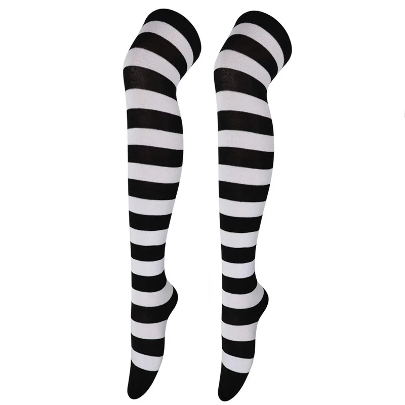 Womens Kousen Warm Dames Meisjes Zwarte Lange Winter Dij Hoge Sokken Gestreepte Over Boven Knie Katoenen Sokken Cosplay 2022