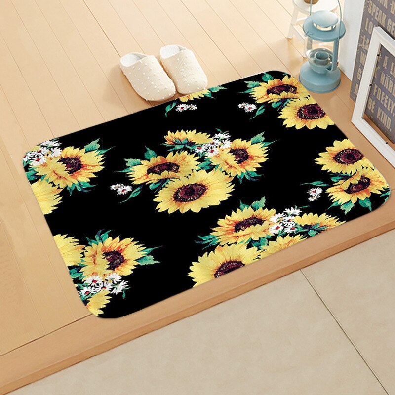 Zonnebloem Patroon Keuken Bad Deur Mat Slaapkamer Antislip Coral Fluwelen Absorberende Tapijt Tapijt Eenvoudige Home Decor Deurmat